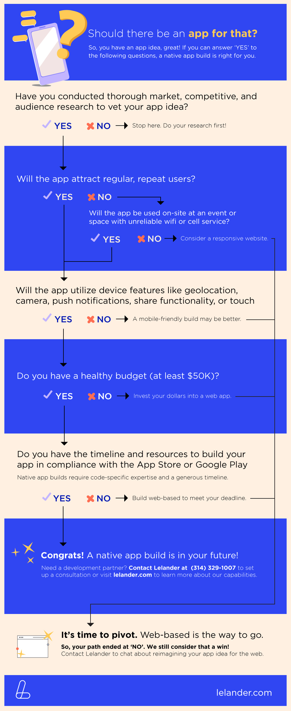 If you can answer ‘YES’ to all the questions, native app development may be right for you. If that’s the case, contact Lelander about partnering up on your next app development project.